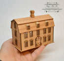 This dollhouse is designed in the Dutch Colonial architectural style, inspired by the Dwight House located in historic Deerfield Massachusetts. Built circa 1754.